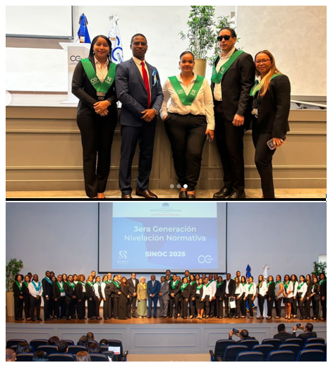 En el marco del acto oficial realizado por la Dirección General de Contabilidad Gubernamental (DIGECOG), recibieron sus certificados en representación del Ayuntamiento los funcionarios Lic. Laidy Reyes, Directora Financiera, Lic. Armando Corona, Tesorero Municipal, Lic. Salvadora Félix, encargada de Contabilidad; y Lic. Elsa Rodríguez, encargada de Patrimonio, quienes completaron de manera satisfactoria las diez nivelaciones normativas del SINOC 2025.