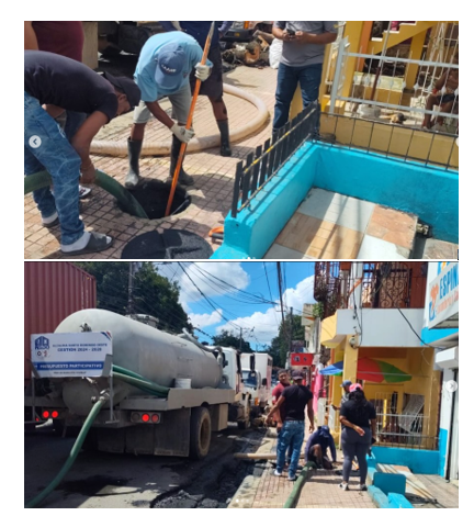 La Dirección de Obras Públicas del Ayuntamiento de Santo Domingo Oeste, en coordinación con el Cuerpo de Bomberos y la Corporación del Acueducto y Alcantarillado de Santo Domingo, ejecutó una jornada de intervención técnica para la limpieza y mantenimiento de un sistema de drenaje pluvial ubicado en las inmediaciones del destacamento del sector Manoguayabo.