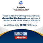 13 octubre, 2025Santo Domingo Oeste, 10 de octubre de 2025. El alcalde, Ing. Francisco Peña, encabezó una reunión con directivos y responsables...