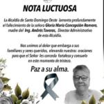 12 noviembre, 2025La Alcaldía de Santo Domingo Oeste lamenta profundamente el fallecimiento de la señora Gloria María Concepción Romero, madre del Ing....