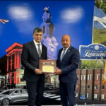 Alcalde de Santo Domingo Oeste felicita a Brian DePeña por su reelección como alcalde de la ciudad de Lawrence.