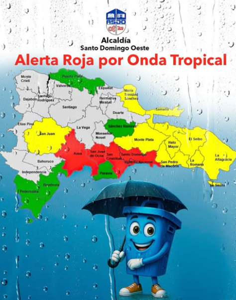 Desde la Alcaldía de Santo Domingo Oeste, hacemos un llamado a la ciudadanía a no lanzar basura en las calles, ya que esto contribuye al taponamiento de imbornales y al agravamiento de inundaciones.