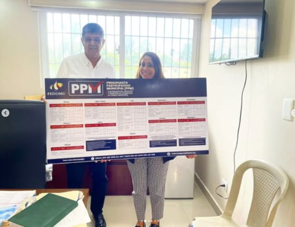 El alcalde de Santo Domingo Oeste, Ing. Francisco Peña, recibió de manera formal el Calendario del Proceso y Remisión de Evidencias del Presupuesto Participativo Municipal, al SISMAP Municipal por parte de la Federación Dominicana de Municipios (FEDOMU), como parte del acompañamiento técnico que brinda a los gobiernos locales para el fortalecimiento de sus capacidades institucionales.