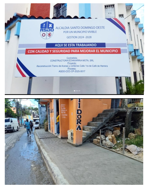 La Alcaldía de Santo Domingo Oeste ejecutó y dejó concluida la reconstrucción de aceras y contenes en la calle Primera del sector Café de Herrera, desarrollando trabajos orientados a fortalecer la infraestructura vial y peatonal del municipio.